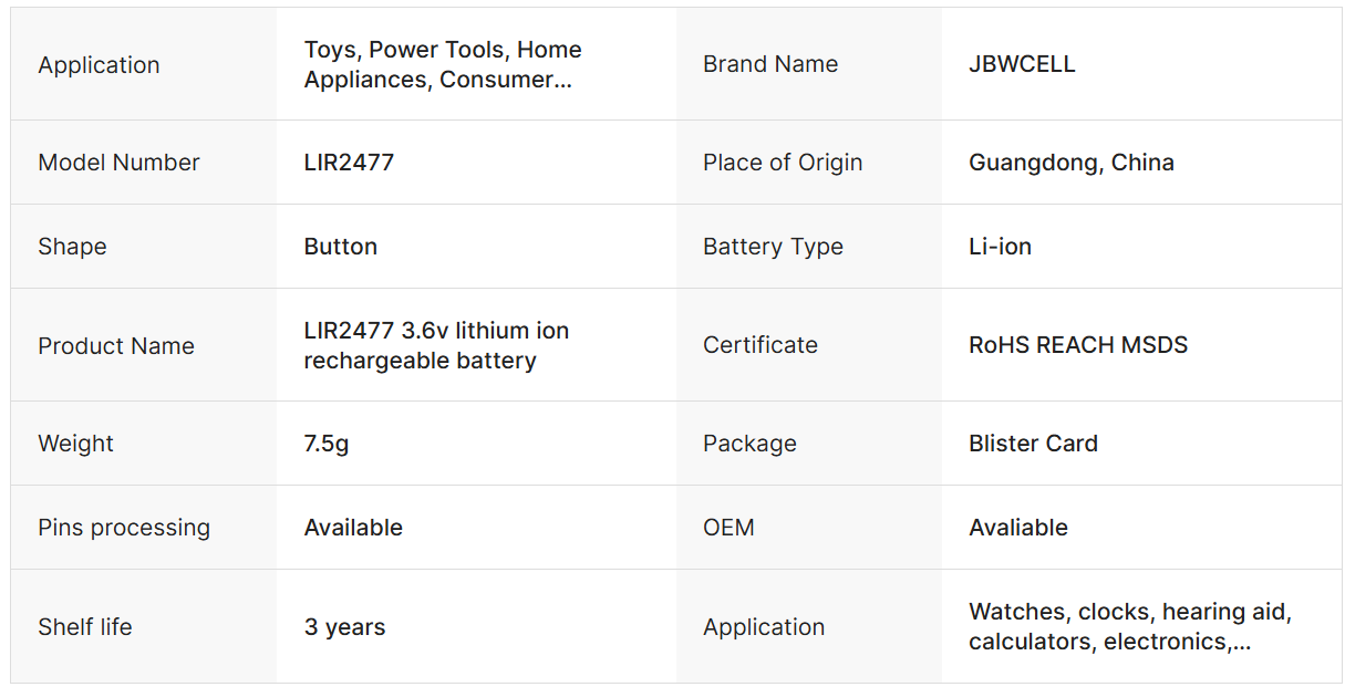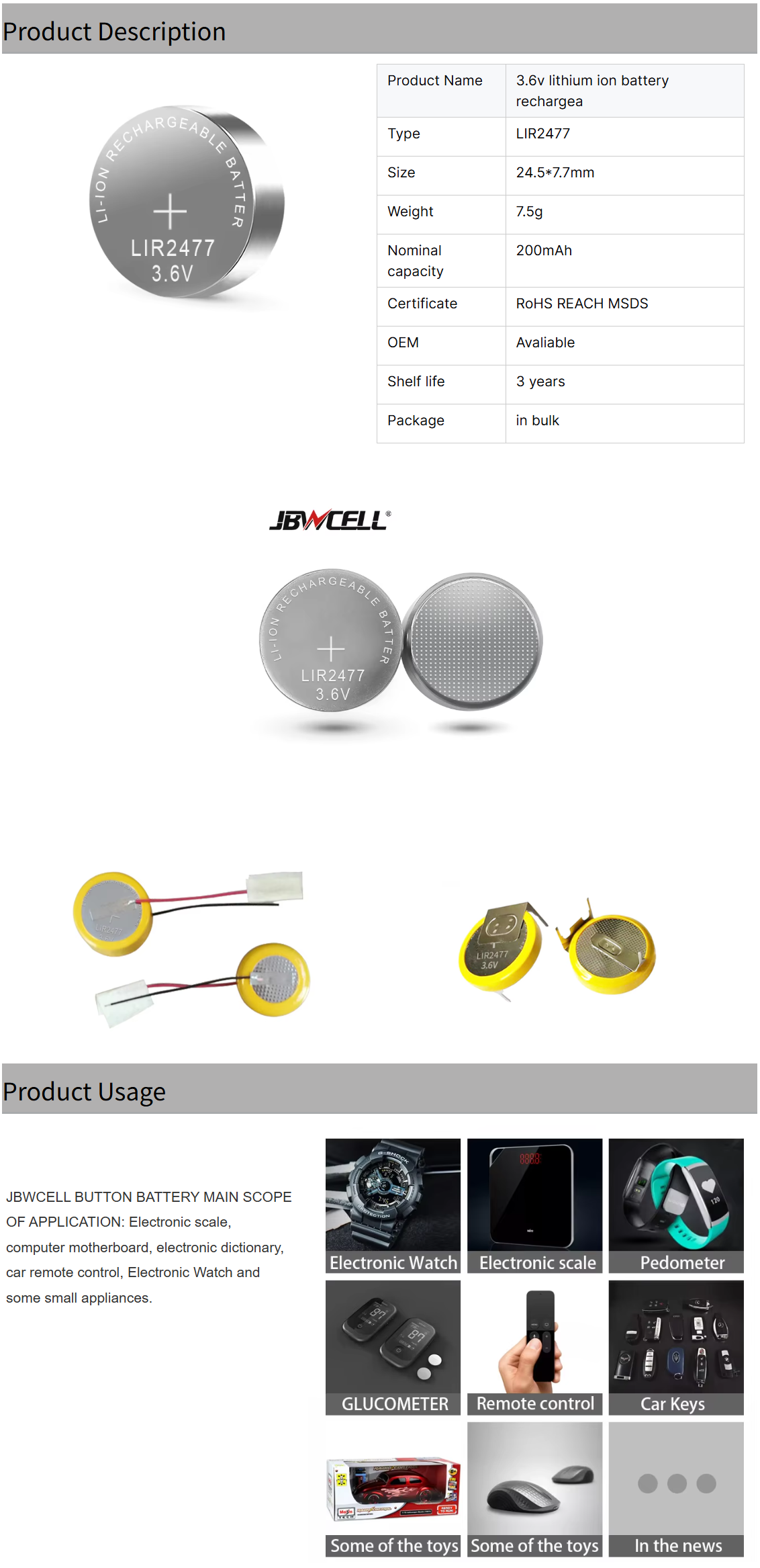 / 3.6v Li-ion Rechargeable Battery Lir2477
