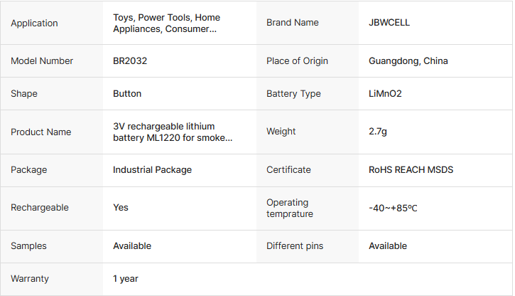 CR2050 3V Lithium Primary Button Cell Battery for Home Appliances Toys Consumer Electronics and Power Tools