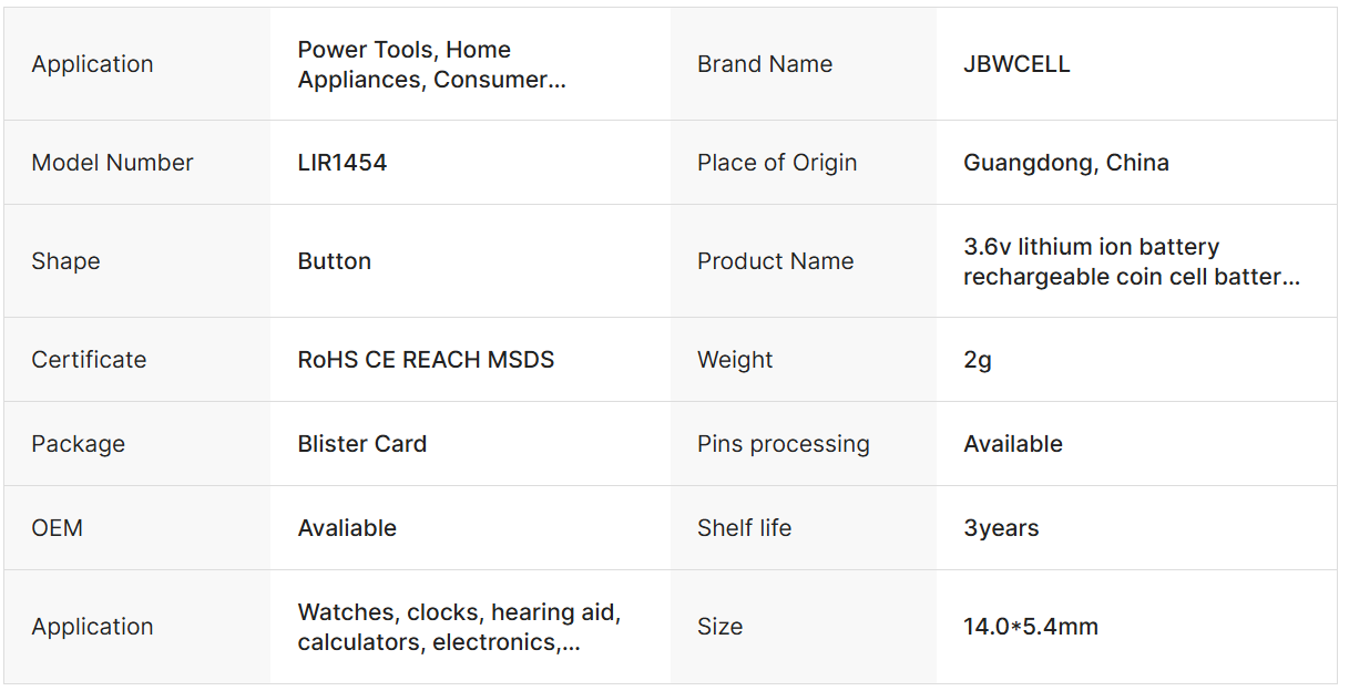 CP1454 ICR1454 LIR1454 Small Button Lithium Ion Battery 3.6V TWS Earphone LIR940 LIR1040 LIR1054 LIR1240 LIR1254