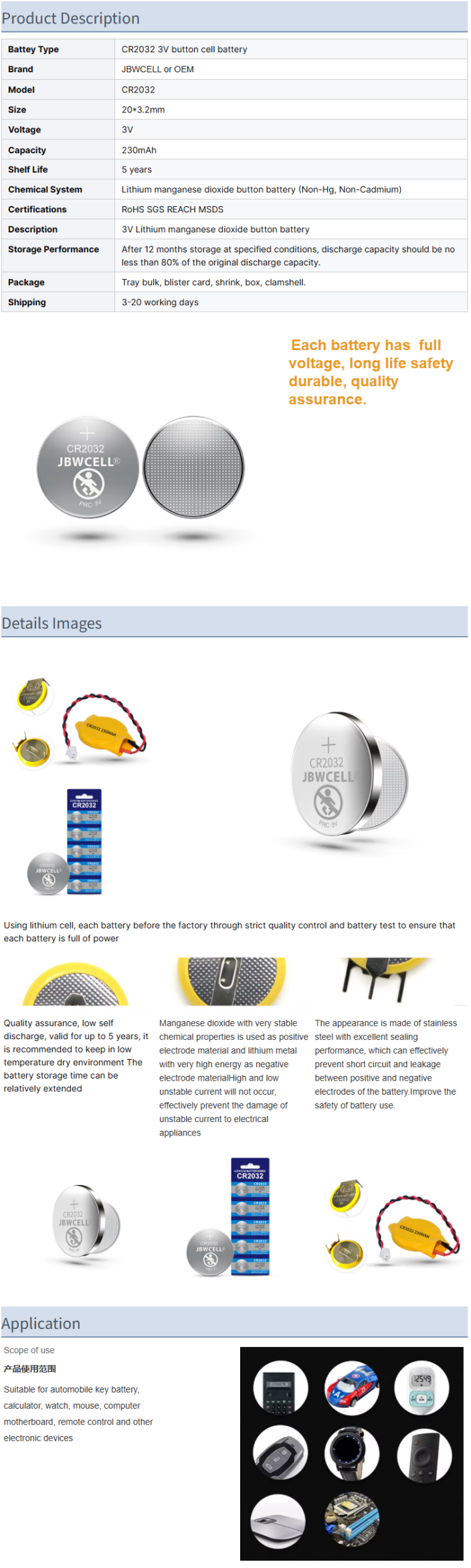 CR2032 3V 230mAh Lithium Button Cell Battery for Home Appliances Toys Consumer Electronics Brands in Blister Pack