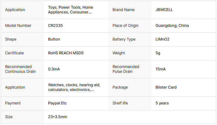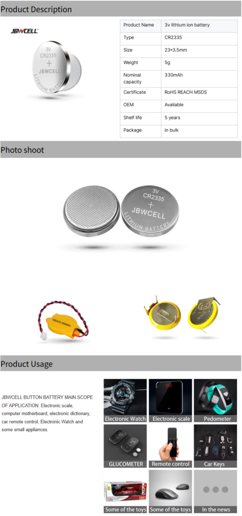 / CR2335 Cr2450 Battery with Solder Pins CMOS