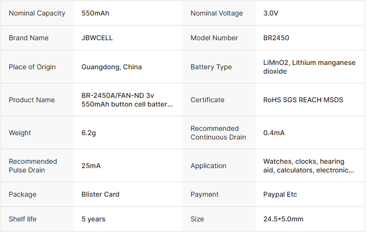 CR2050 3V Lithium Primary Button Cell Battery for Home Appliances Toys Consumer Electronics and Power Tools