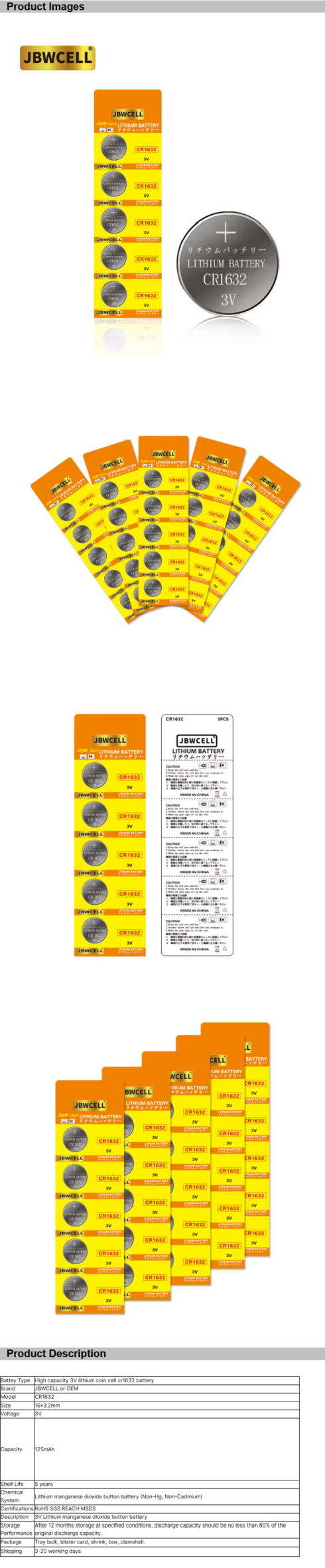 / High Capacity 3V Lithium Coin Cell Cr1632 Battery