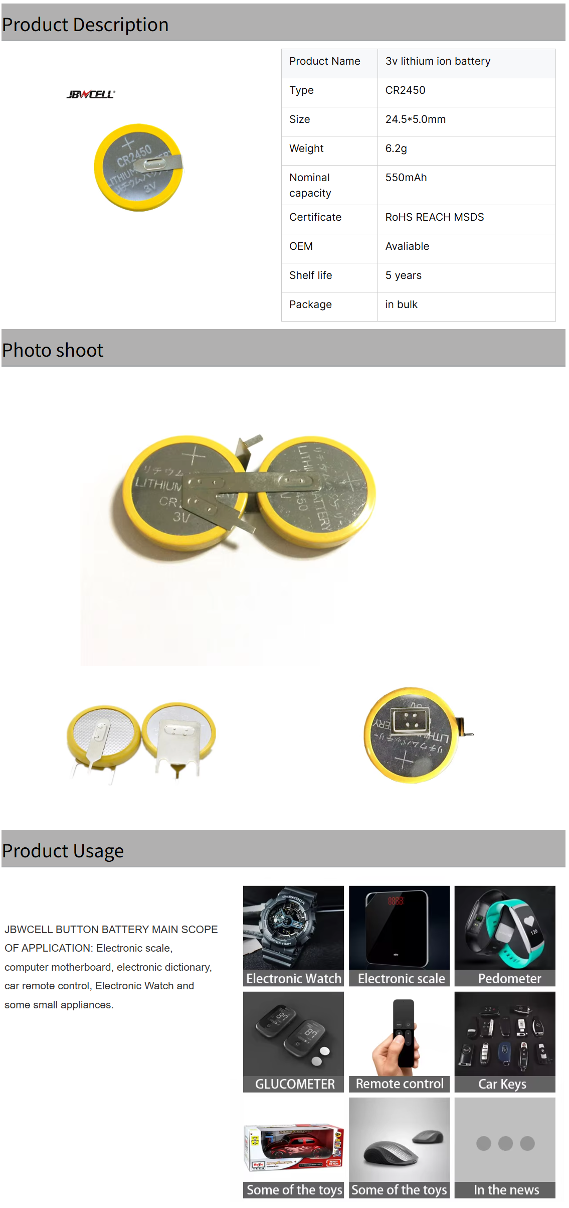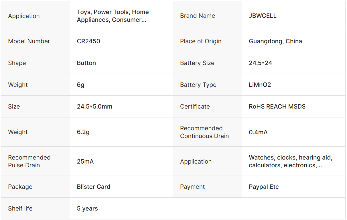 / High Capacity 600mAh Cr2450 3v Lithium Button Cell Battery Cr2450 Solder Tabs Battery
