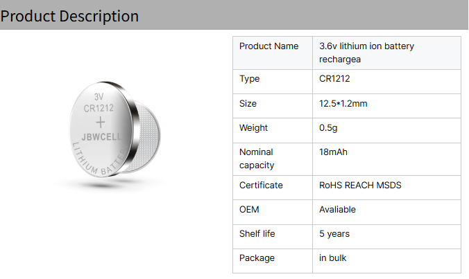 / High Quality CR1212 Lithium Button Cell Battery 3V for Watch