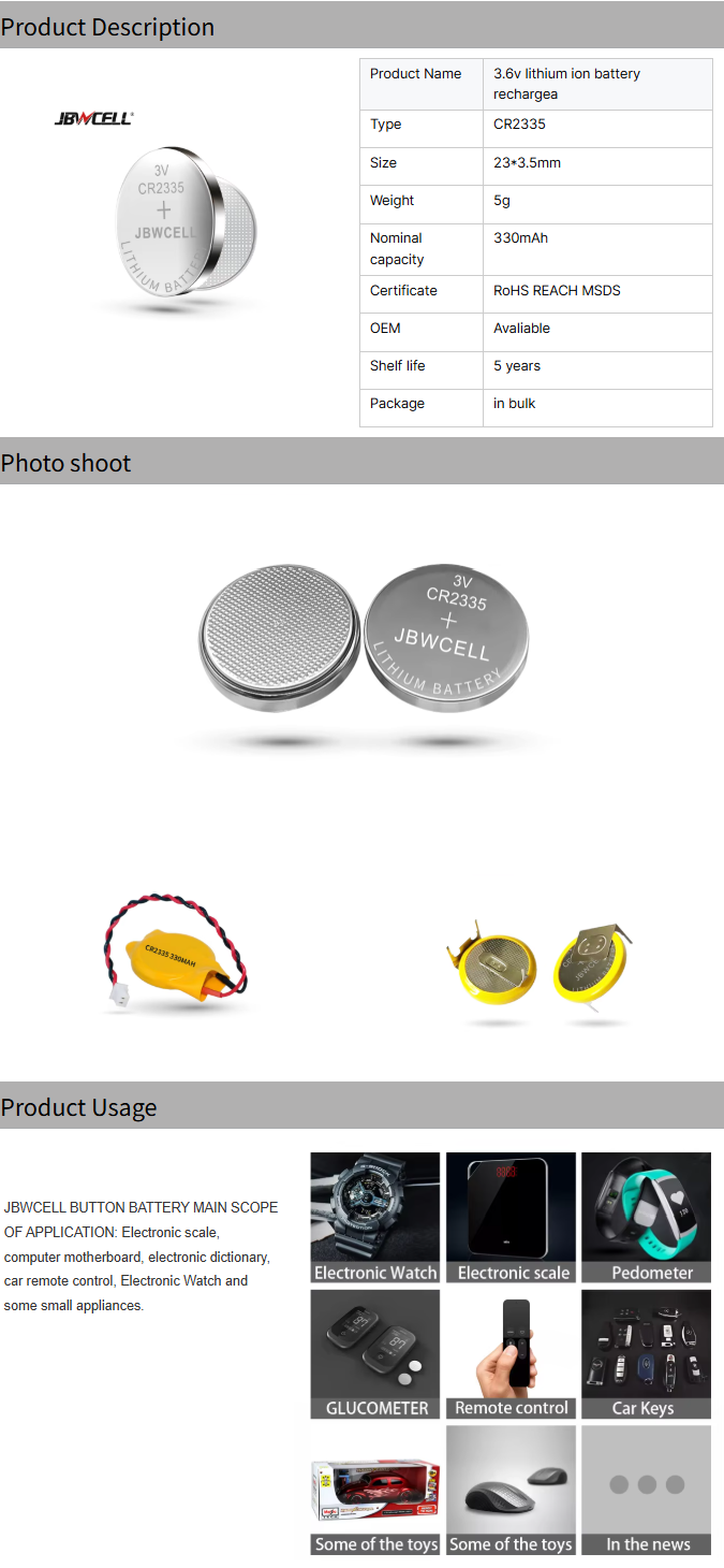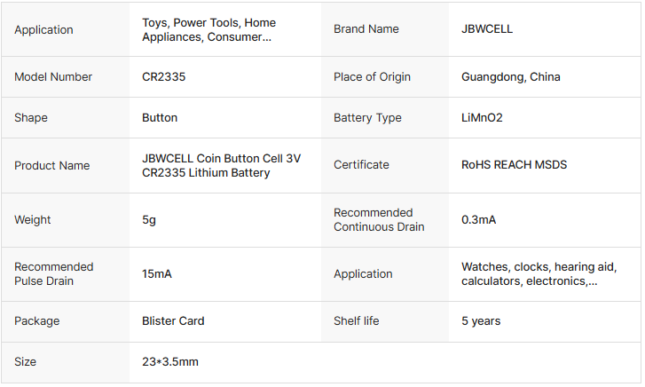 JBWCELL Coin Button Cell 3V CR2335 Lithium Battery