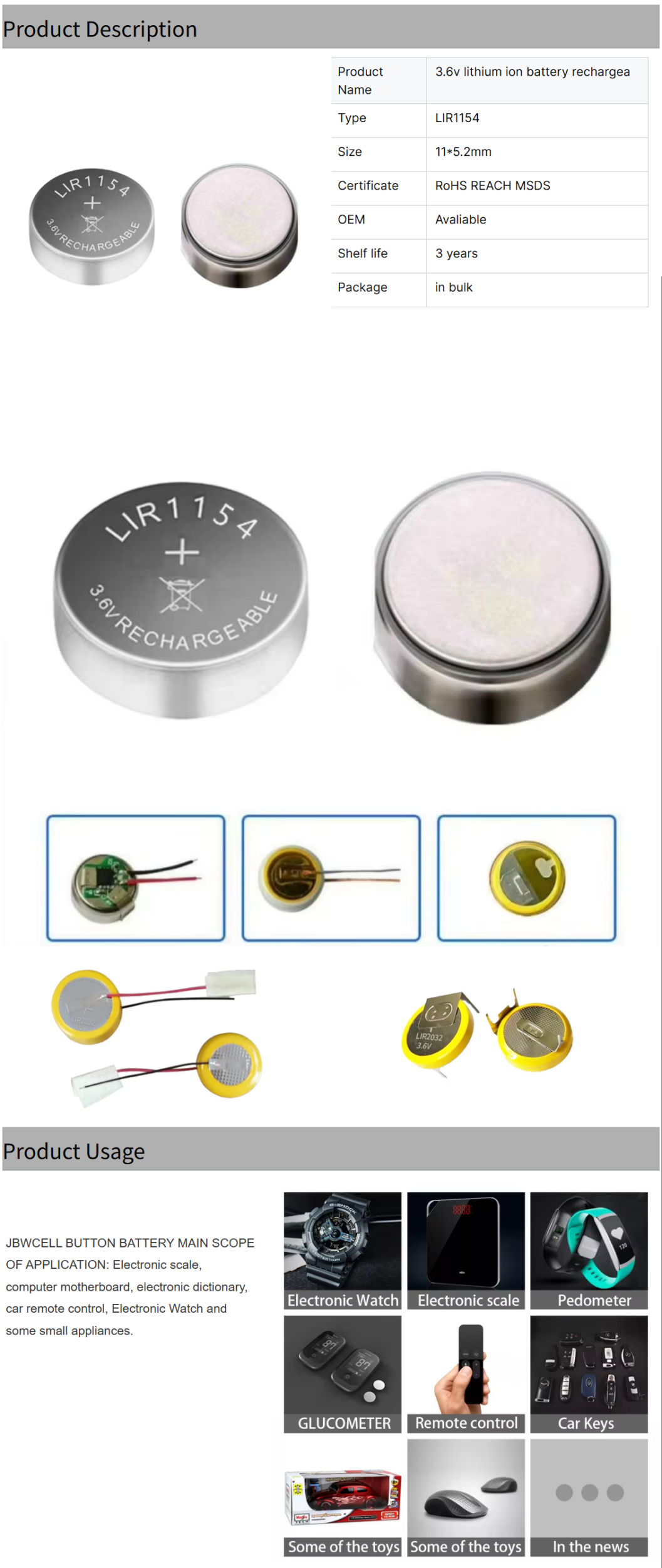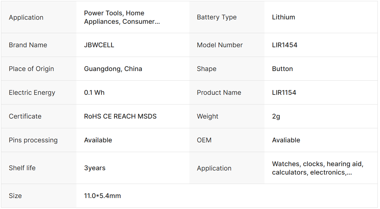 JBWCELL LIR1454 3.6V Lithium Battery for TWS Earphone Home Appliances Consumer Electronics & Power Tools-3 Year Shelf Life