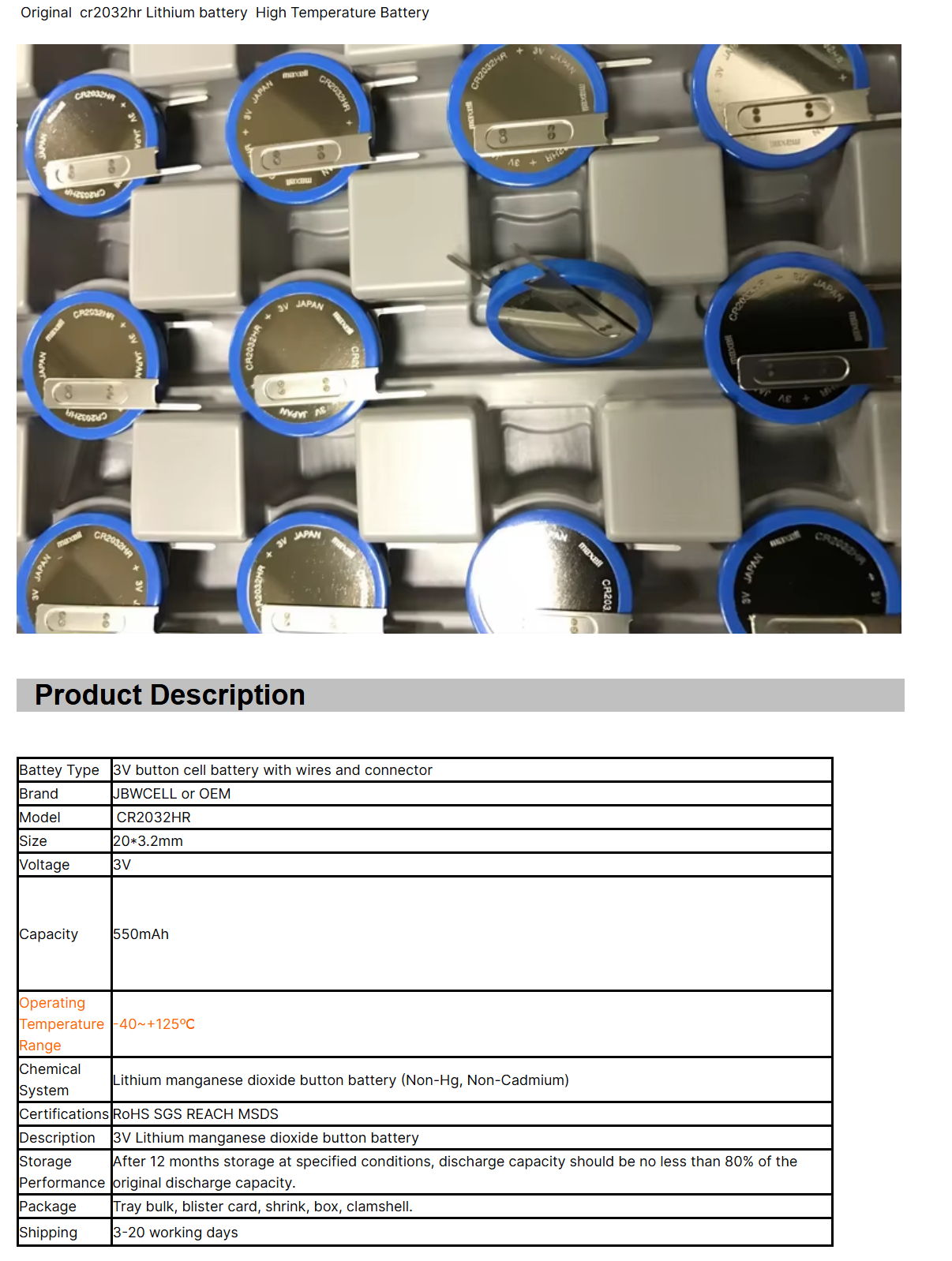 / Original Cr2450 Lithium Coin Cell Battery High Temperature Battery