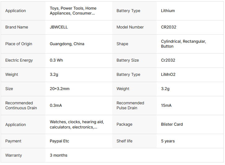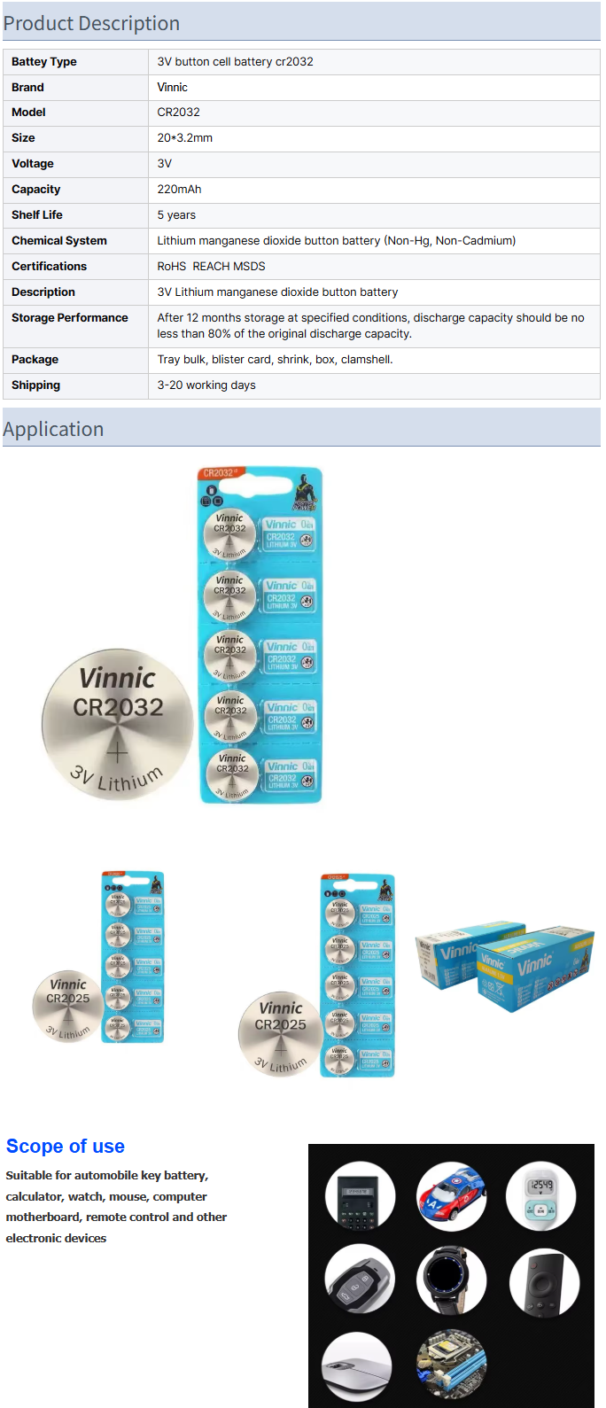 Vinnic Lithium LiMnO2 3V Button Coin Cell CR2032 Battery for Consumer Electronics Home Appliances & Toys
